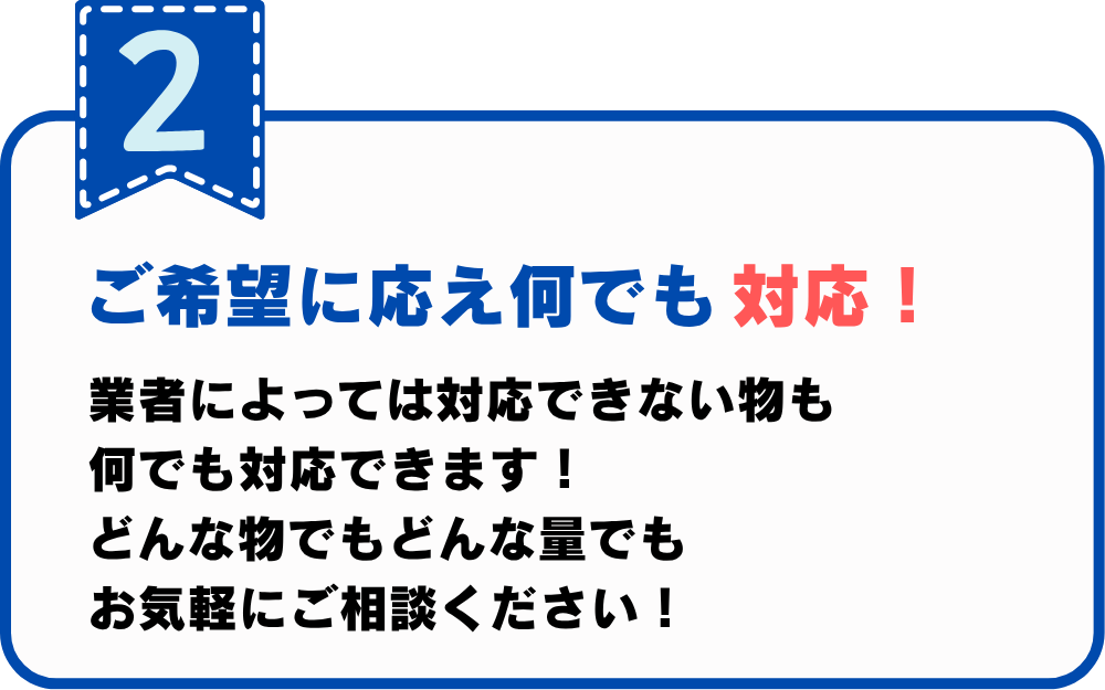 ※内外装リフォームや工事現場から出るような産業廃棄物はパック料金以外の別途費用がかかる場合があります。