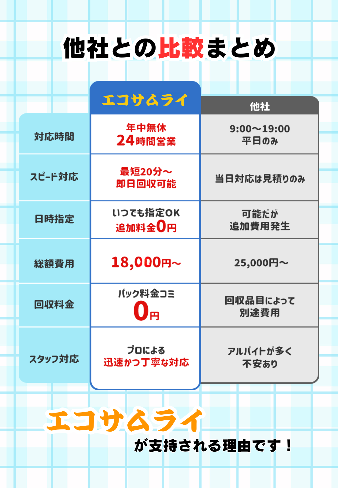 エコサムライでは料金体系が明確で分かりやすく、不当な追加費用