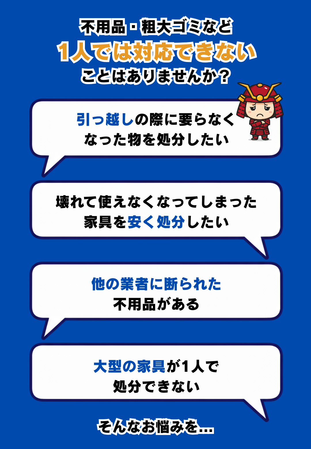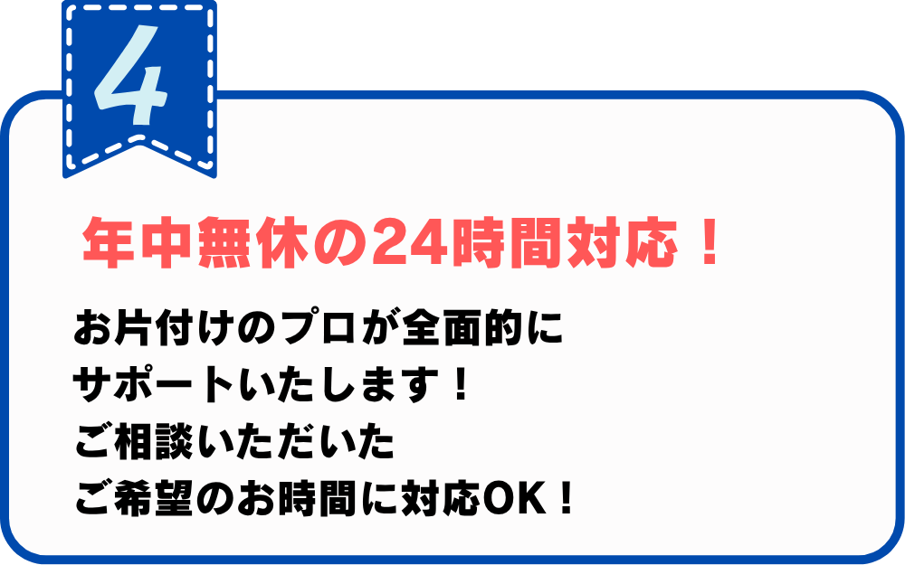 お部屋からの運び出し作業・現地までの出張費・ゴミの処分費などは全て0円です。