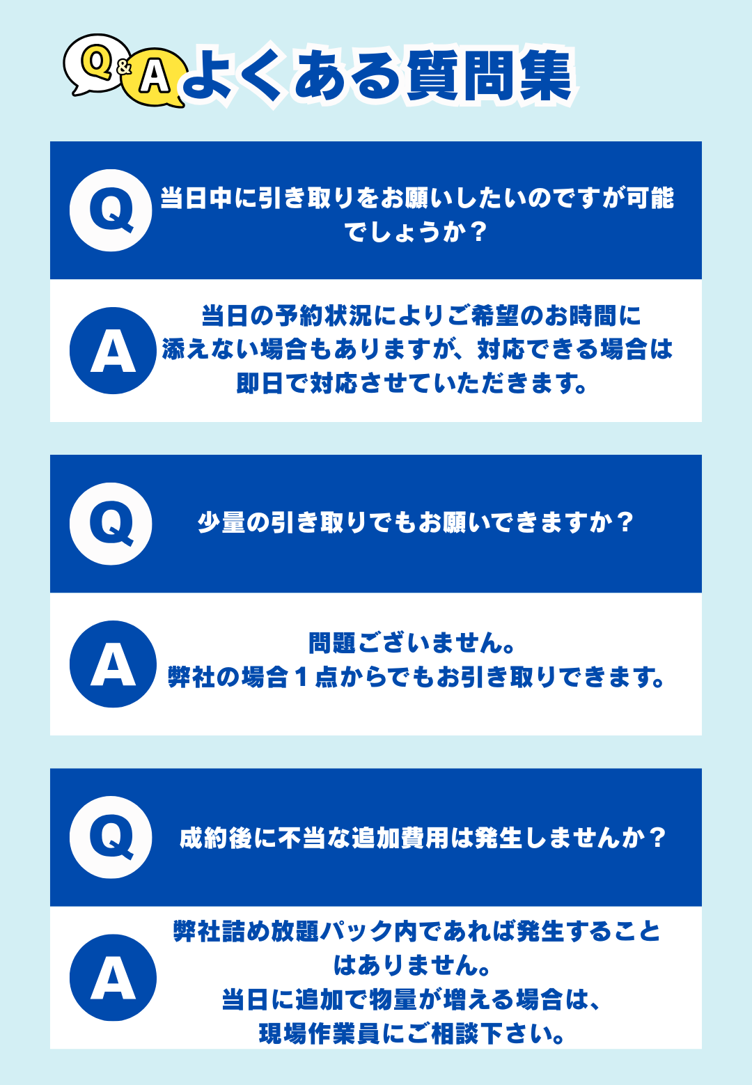 ※内外装リフォームや工事現場から出るような産業廃棄物はパック料金以外の別途費用がかかる場合があります。
