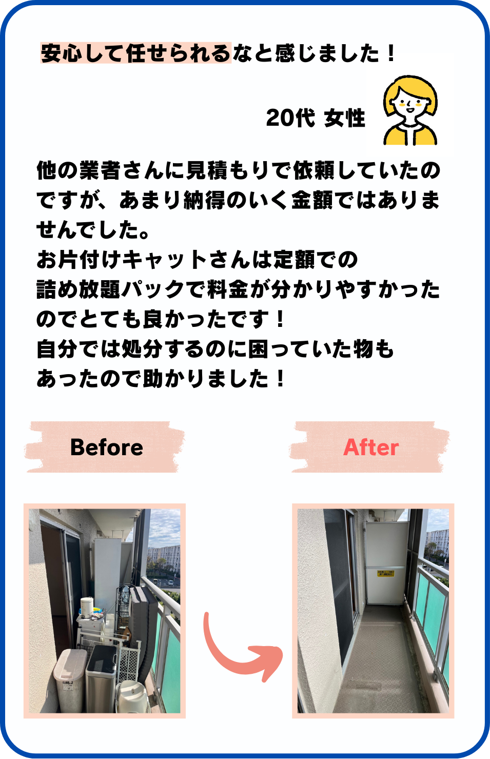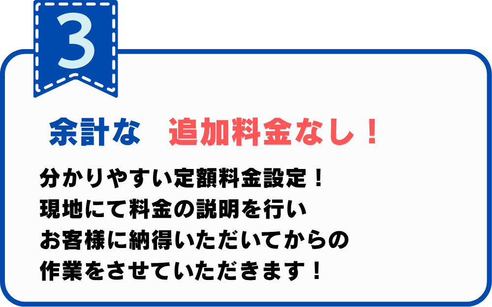 料金をご案内する前に作業を進める事はなく、お客様にご納得いただいた